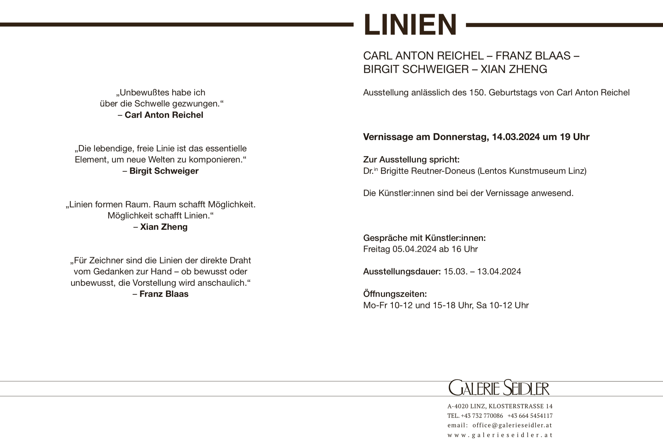 Ausstellungseröffnung in der Galerie SEIDLER Linz am 14.3.2024!
