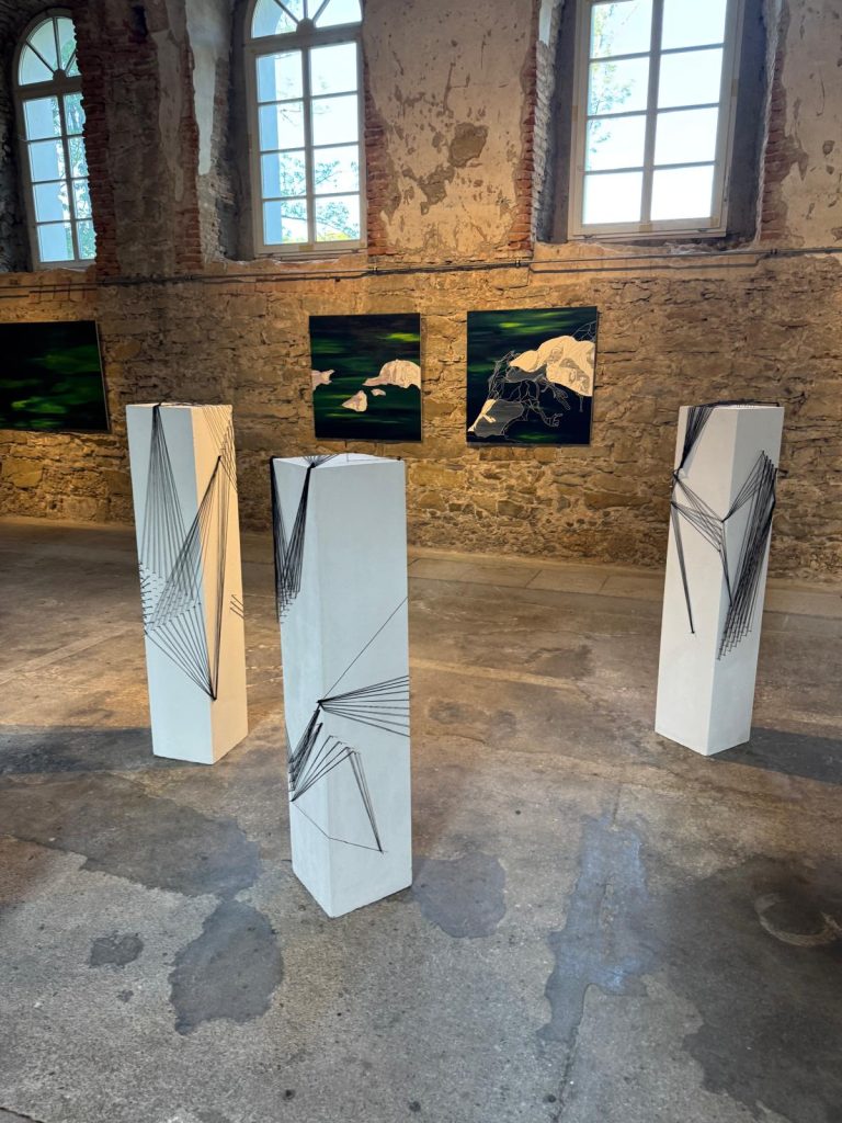 Ateliereinblick Villa RablKannelurenkommunikation — Fadenverspannungen — SPINNEN