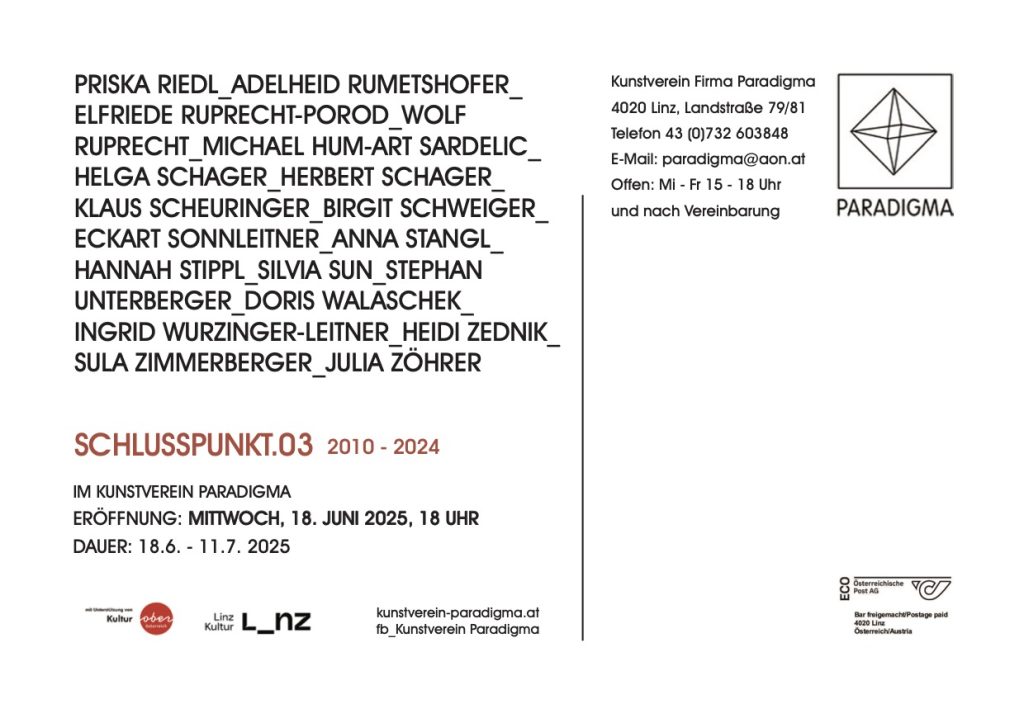 Galerie PARADIGMA Linz, zu sehen bis zum 17.11.2023, jeweils Mittwoch bis Freitag von 17 – 19 Uhr.