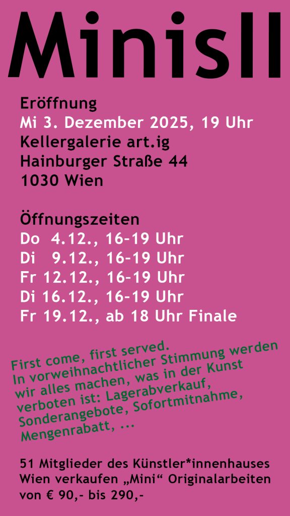 OPEN STUDIO DAY am 19. 10. 2025 von 14 – 18 Uhr: Eröffnung des neuen Ateliers in der Rudolfstraße 46 (Eingang im Hof) im Zuge der TAGE DES OFFENEN ATELIERS.
