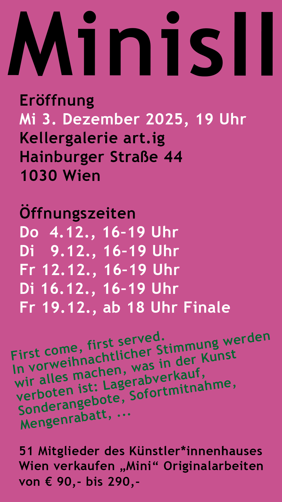 Erste Vernissage fand am 04. August 2023, 19 Uhr in der Galerie “Lichtraum Eins by Paul Siblik”, Heinrichsgasse 2, 1010 Wien statt, organisiert in enger Kooperation mit dem Verein “LichTraum” by Sonia Siblik: https://www.lichtraumbysoniasiblik.com/