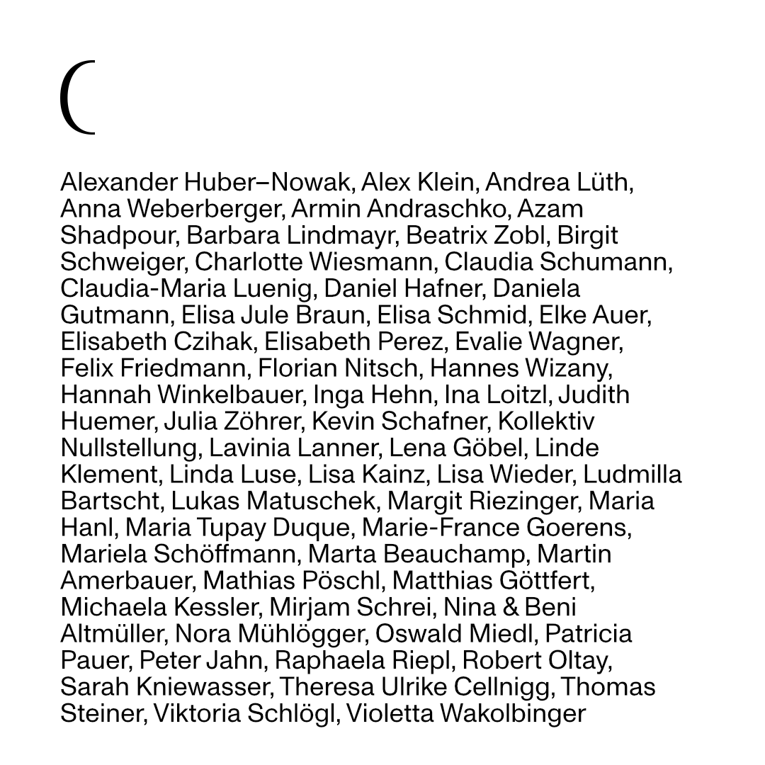 Künstler*innen: Christian Flora, Katharina Karner, Georg Lebzelter, Teer (Torsten Mächtel), Birgit Schweiger, Ute Zaunbauer
